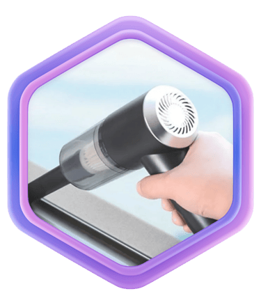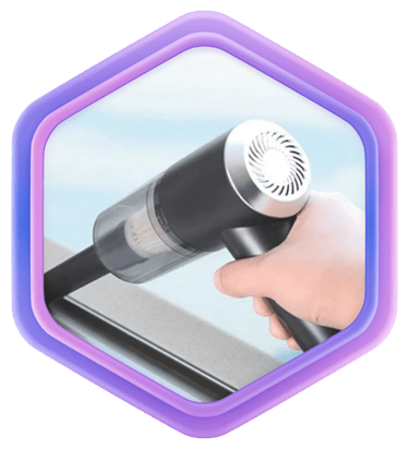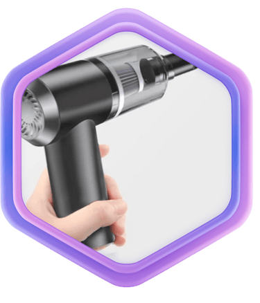 O Mini Aspirador Portátil Reikon™ resolve sujeiras sólidas e poeira fina com rapidez.