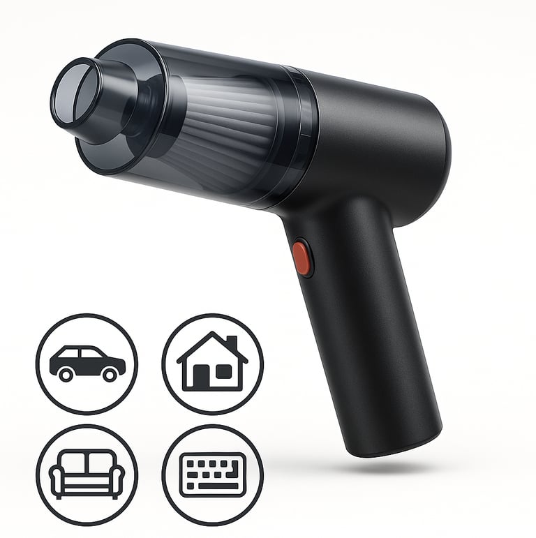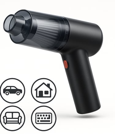Um aspirador compacto, sem fio e potente, criado pra limpar carro, sofá, teclado e cantinhos difíceis sem esforço.